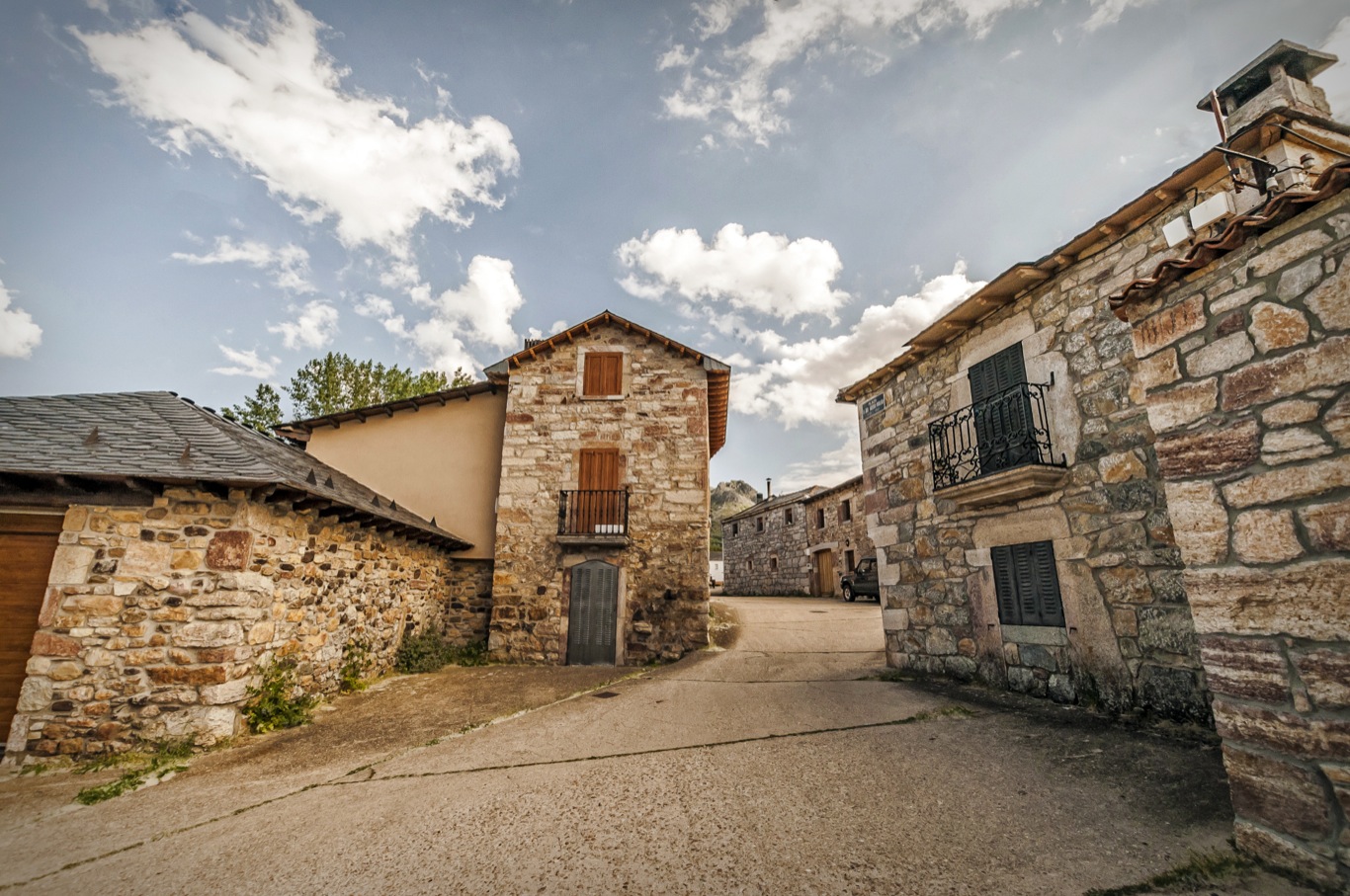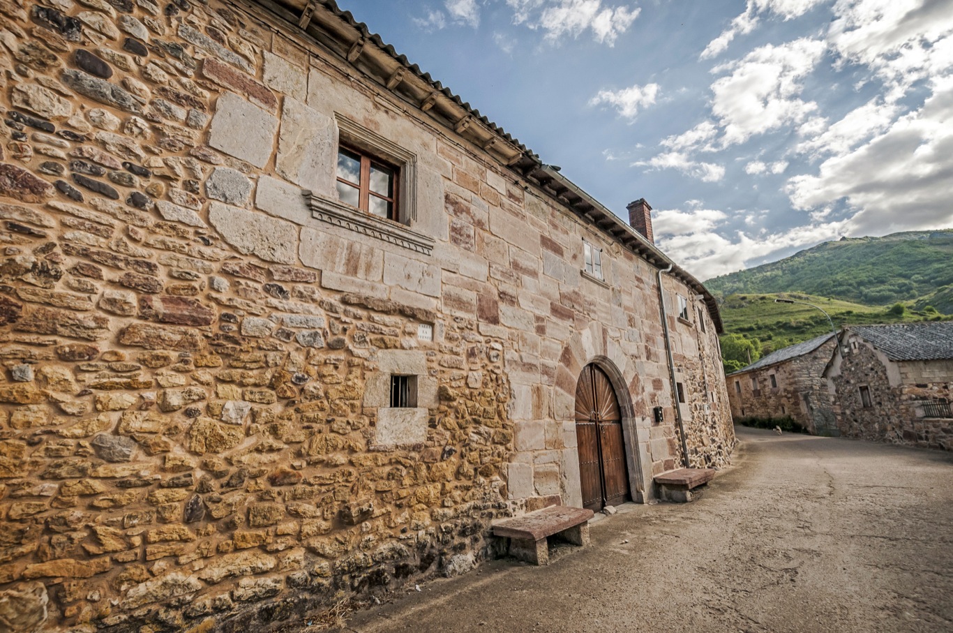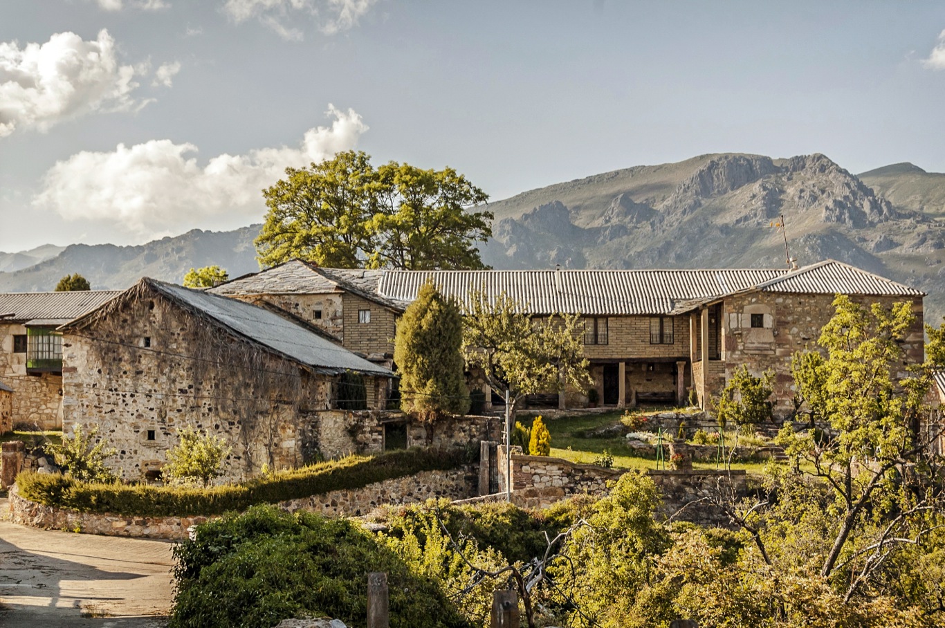 Casas de piedra con ventanas pequeñas y cubiertas de pizarra. Las casas son aún redondeadas con algunos balcones enrejados y ventanas ojivales. La mayoría tienen patio interior, alrededor del que se distribuían las distintas estancias de la vivienda, las cuadras, los pajares y todo lo necesario para las labores agrarias.