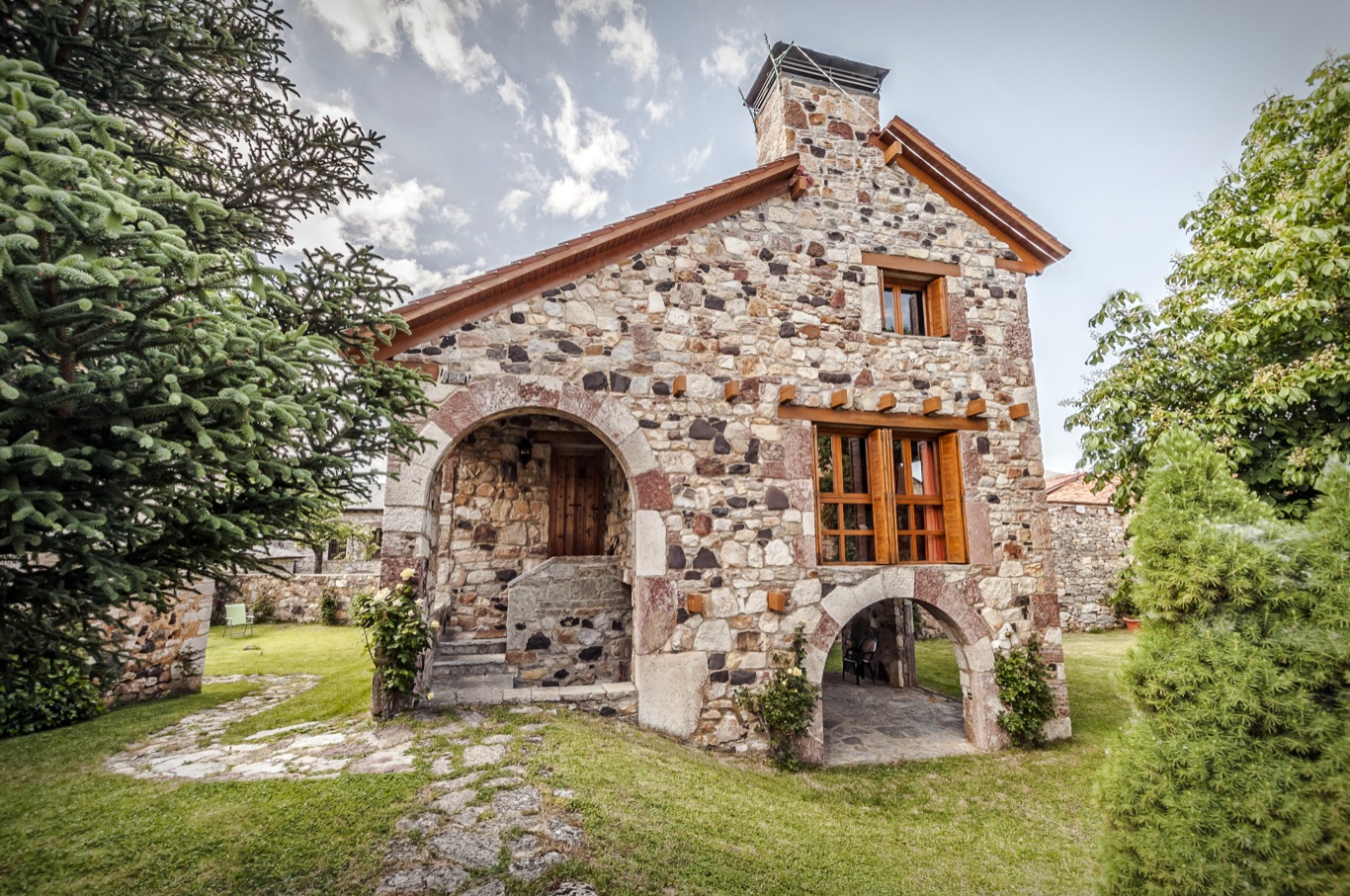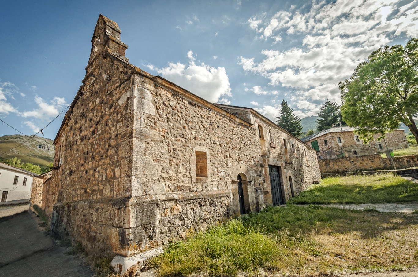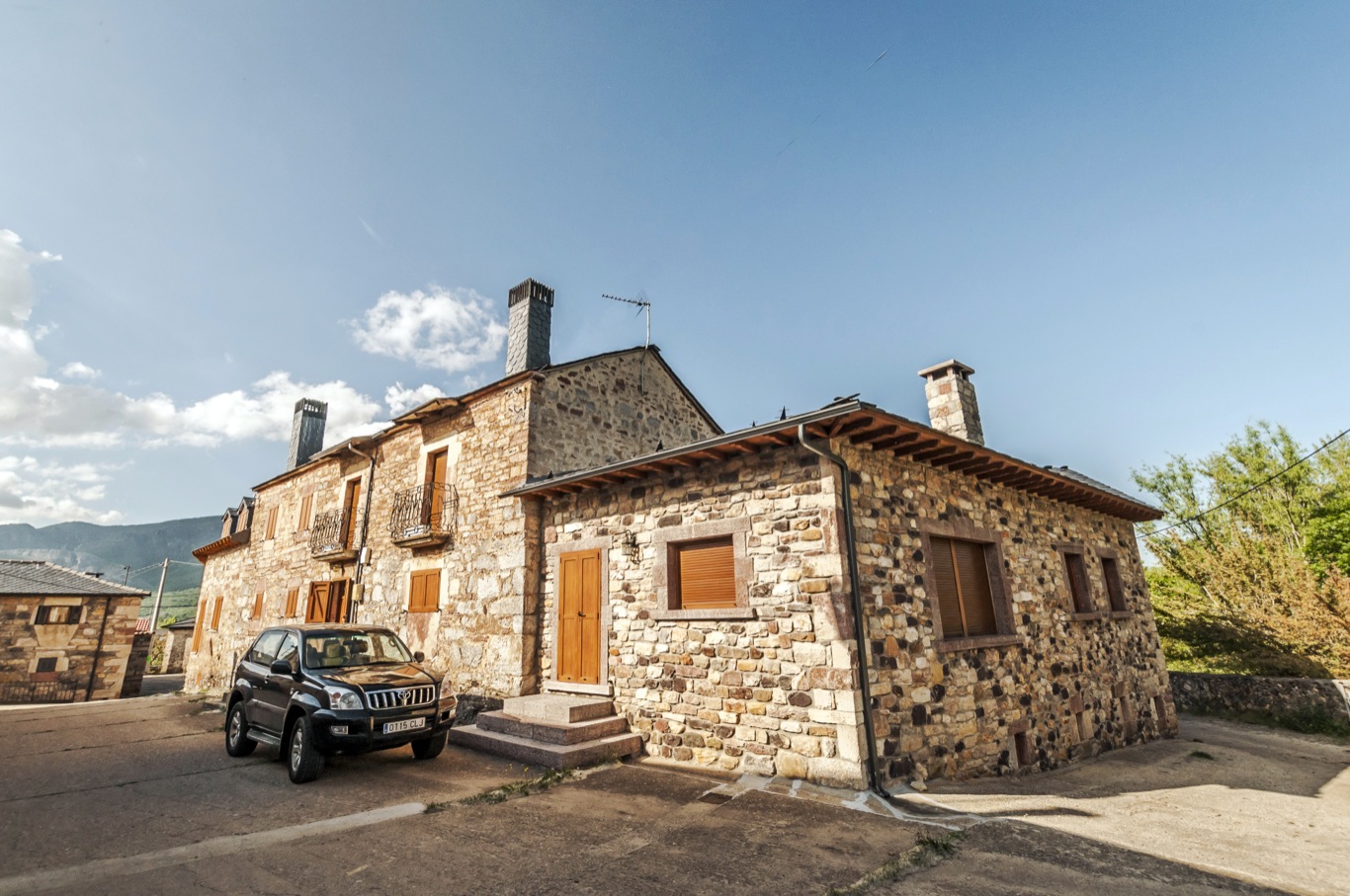 Casas de piedra con ventanas pequeñas y cubiertas de pizarra. Las casas son aún redondeadas con algunos balcones enrejados y ventanas ojivales. La mayoría tienen patio interior, alrededor del que se distribuían las distintas estancias de la vivienda, las cuadras, los pajares y todo lo necesario para las labores agrarias.