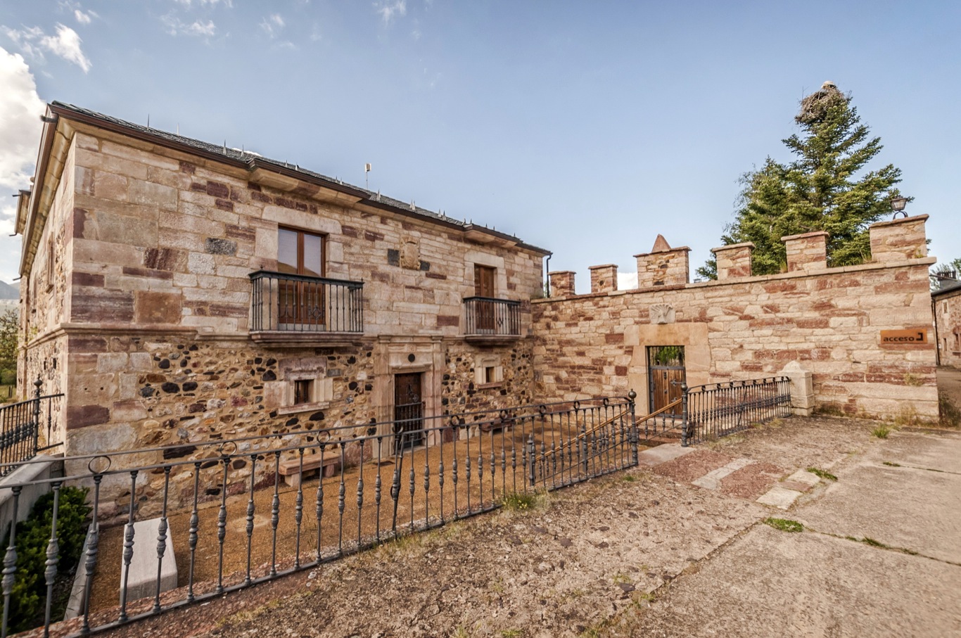 En la reconstrucción del palacio se han cuidado todos los detalles. Destaca una rejería, que según se cuenta en el pueblo, se mandó forjar en la herrería de Compludo.